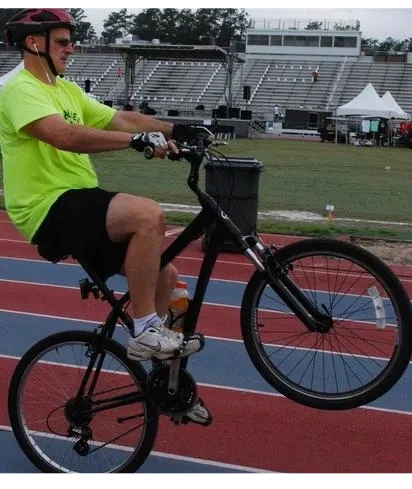 George McCall rides "wheelies" to fight childhood cancer.